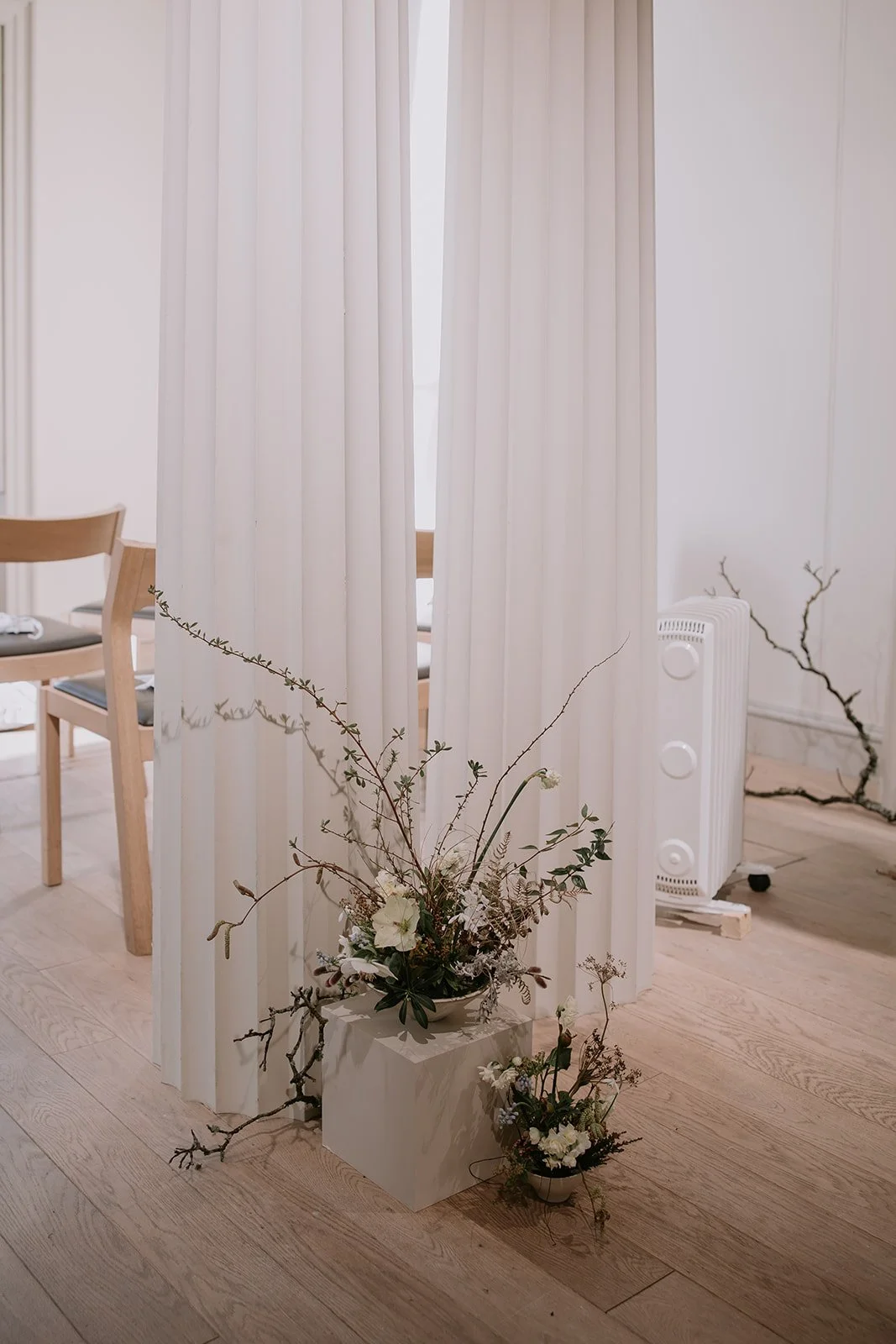 As well as sourcing beautiful flowers and foliage from local growers, I love to include plant dyed silk ribbons, ceramics and vessels from other wonderful small businesses, creatives and artists. These natural materials and details work so well with the botanicals.